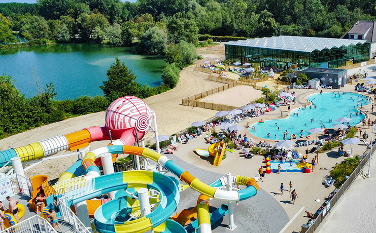 Het waterpark op camping Près de la Fontaine nodigt je uit om plezier te maken en je te vermaken bij het buitenzwembad. Sensatiezoekers zullen blij zijn met onze indrukwekkende Firebowl-glijbaan, waar je met z'n tweeën kunt opstijgen en in volle vaart kunt worden meegesleurd door de stroming van het water. Plezier en actie gegarandeerd!